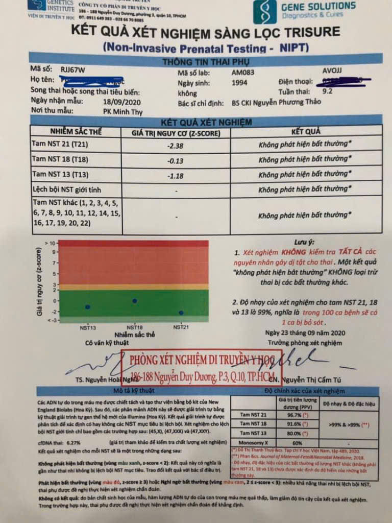 ( Hình ảnh minh họa kết quả Nipt của sản phụ )