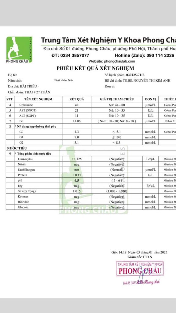 – Siêu âm hình thái và kiểm tra tim thai nhi có bất thường không và các cơ quan khác …v…vv